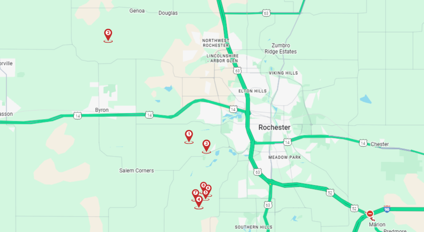 Discover Olmsted County's finest. View our map to pinpoint each stunning home and strategize your ideal tour path. We've made it easy to ensure you experience every exclusive property.